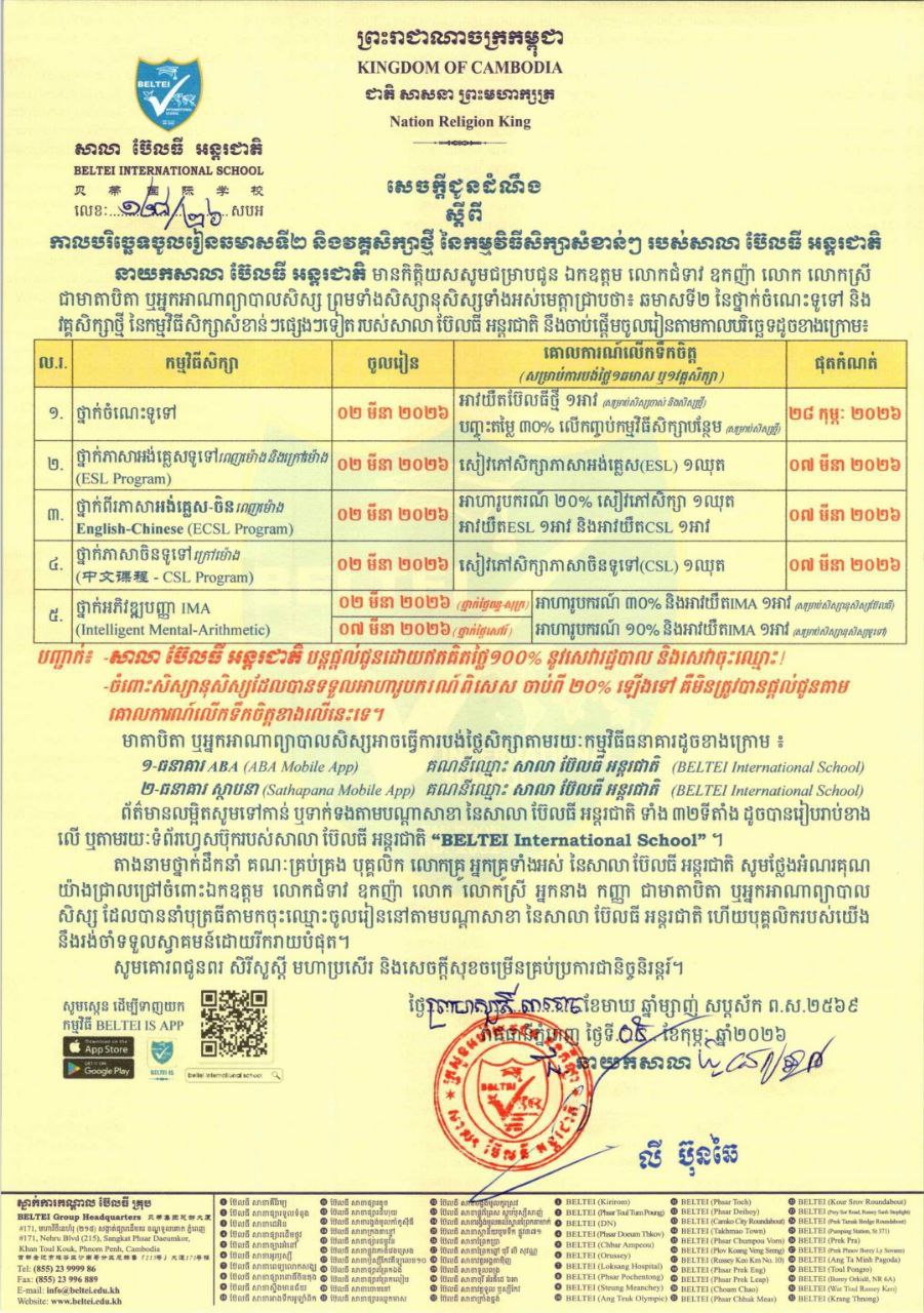 "ពិធីប្រគល់សញ្ញាបត្រភាសាអង់គ្លេសប៊ែលធីជូនសិស្សកម្រិតទី១២ (LEVEL 12) ជំ...