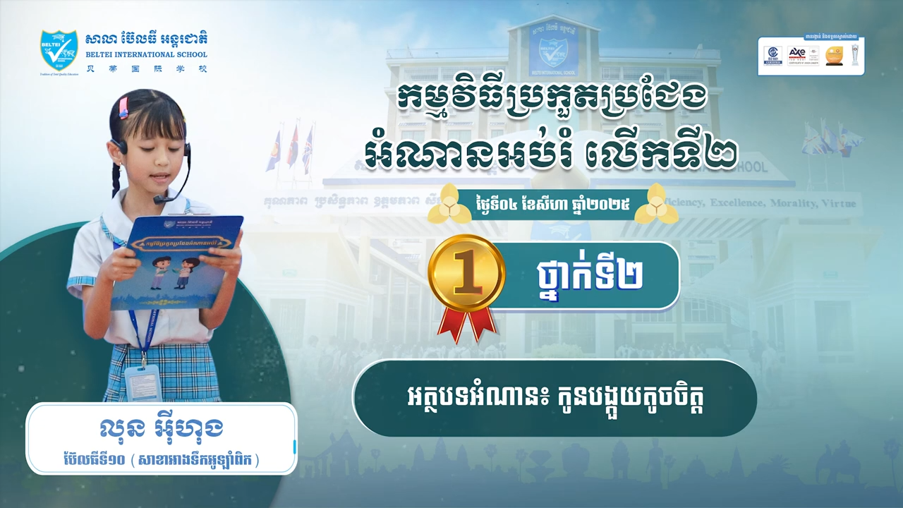 "អបអរសាទរពិធីប្រគល់សញ្ញាបត្រមធ្យមសិក្សាទុតិយភូមិប៊ែលធី ជូនដល់សិស្សថ្នាក់ទី១២ ផ្នែកចំណេះទូទៅ ជំនាន់ទី២០ ឆ្នាំសិក្សា ២០២៤-២០២៥ សរុបចំនួន ២៦៨០ នាក់"