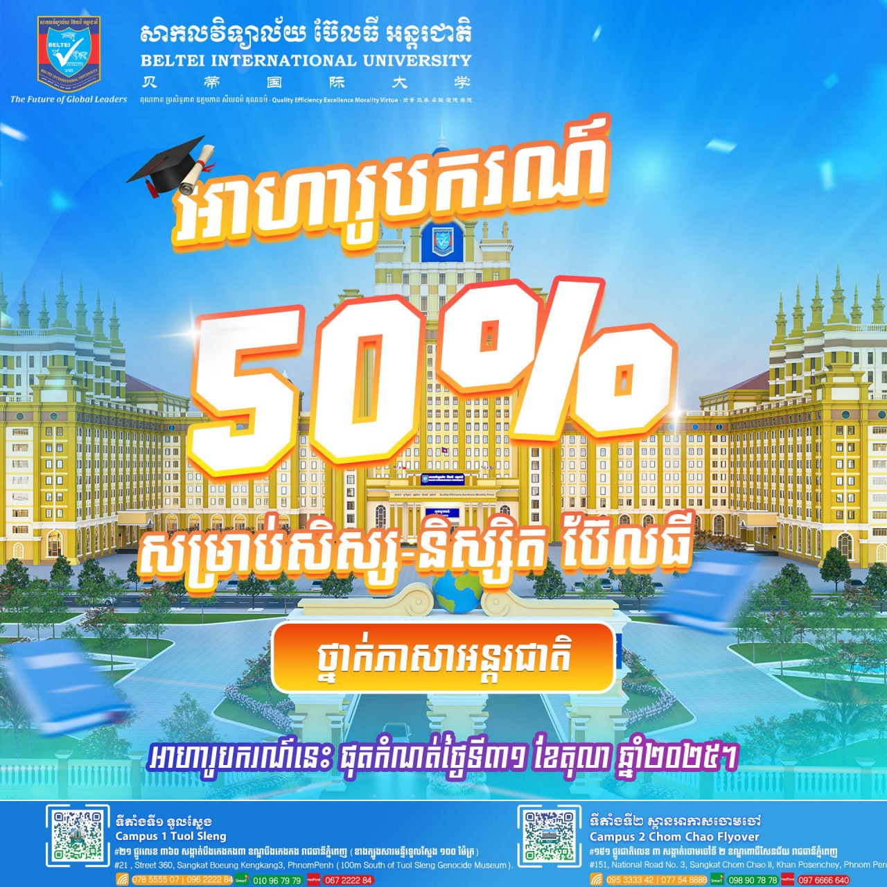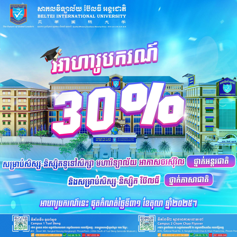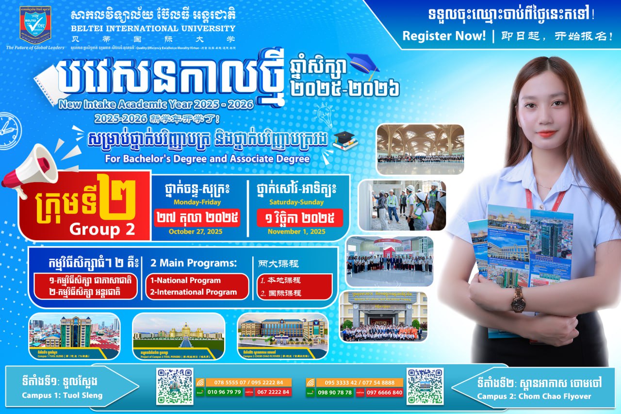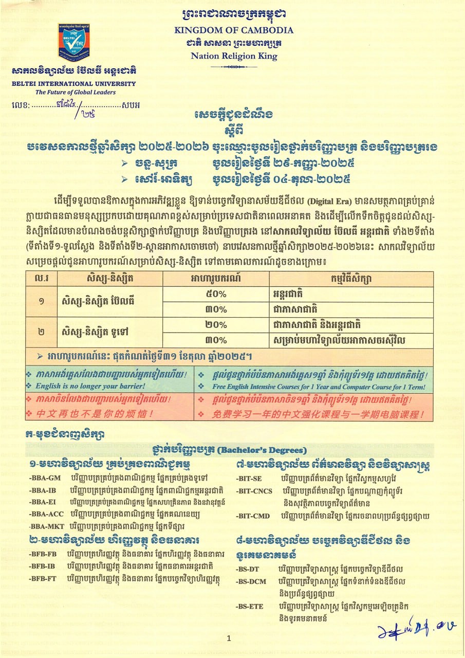 - Email: biu.admin@beltei.edu.kh (General Information)